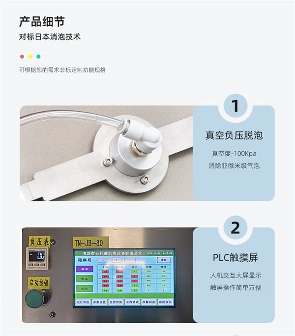 顯影用全自動(dòng)消泡機(jī)阻焊/綠油用全自動(dòng)消泡機(jī)去膜用全自動(dòng)消泡機(jī)TN-JB-80S真空脫泡攪拌機(jī)6L雙動(dòng)力TN-1700A在線式連續(xù)真空脫泡機(jī)